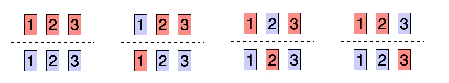 Mögliche Anordnungen von sechs Chromosomen bei 2n = 6.